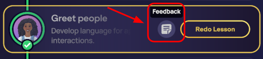 At the end of each part of a lesson, you can rate the section with a thumbs up or thumbs down. This feedback is used to improve future lesson experiences and is a completely optional part of the experience.