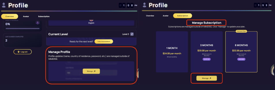 New Manage Profile and Manage Subscription links have been added to your profile page. These open in your device’s browser, making it easier to update your info or subscription details outside the app.