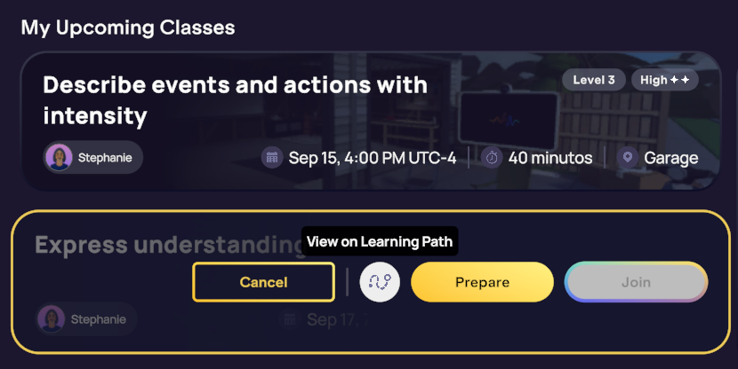 On the Home tab, in your “My Upcoming Classes” section, you’ll now see a “Show on Learning Path” button. Clicking this helps you quickly visualize how your upcoming class fits into your overall progress.