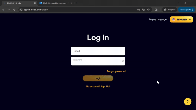 Enter your IMMERSE account email address