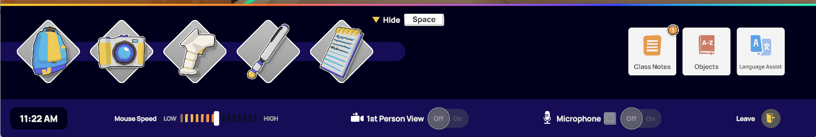 To interact with your notes, open the Class Notes menu.