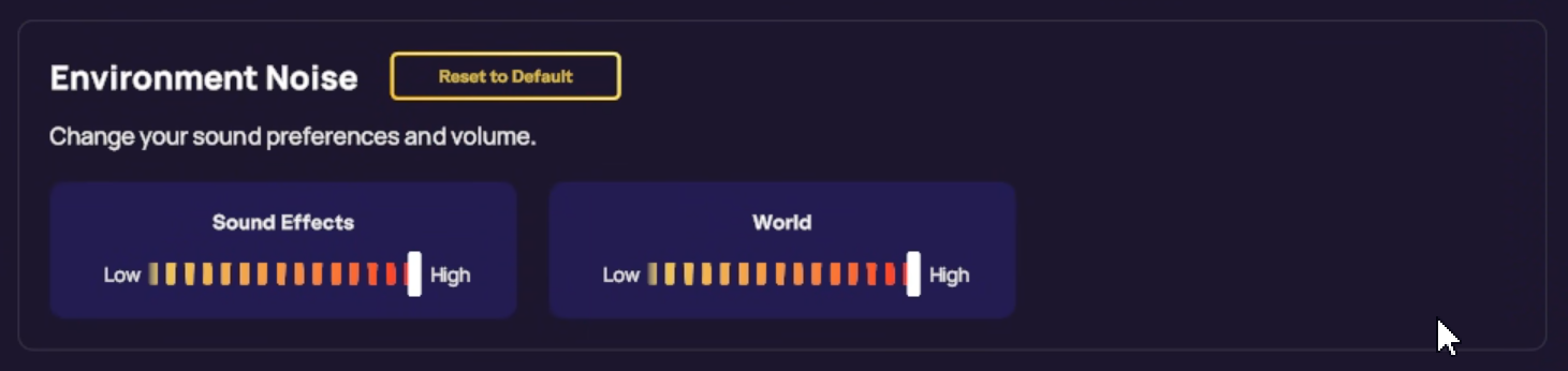 This will lower or increase the volume of any background noises including: music, chirping birds, water trickling, wind blowing, fire crackling, and more!