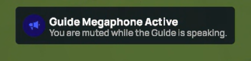 When activated, the megaphone enables the Guide's voice to be heard across all team audio channels. Learners will be briefly muted while the Guide is speaking.