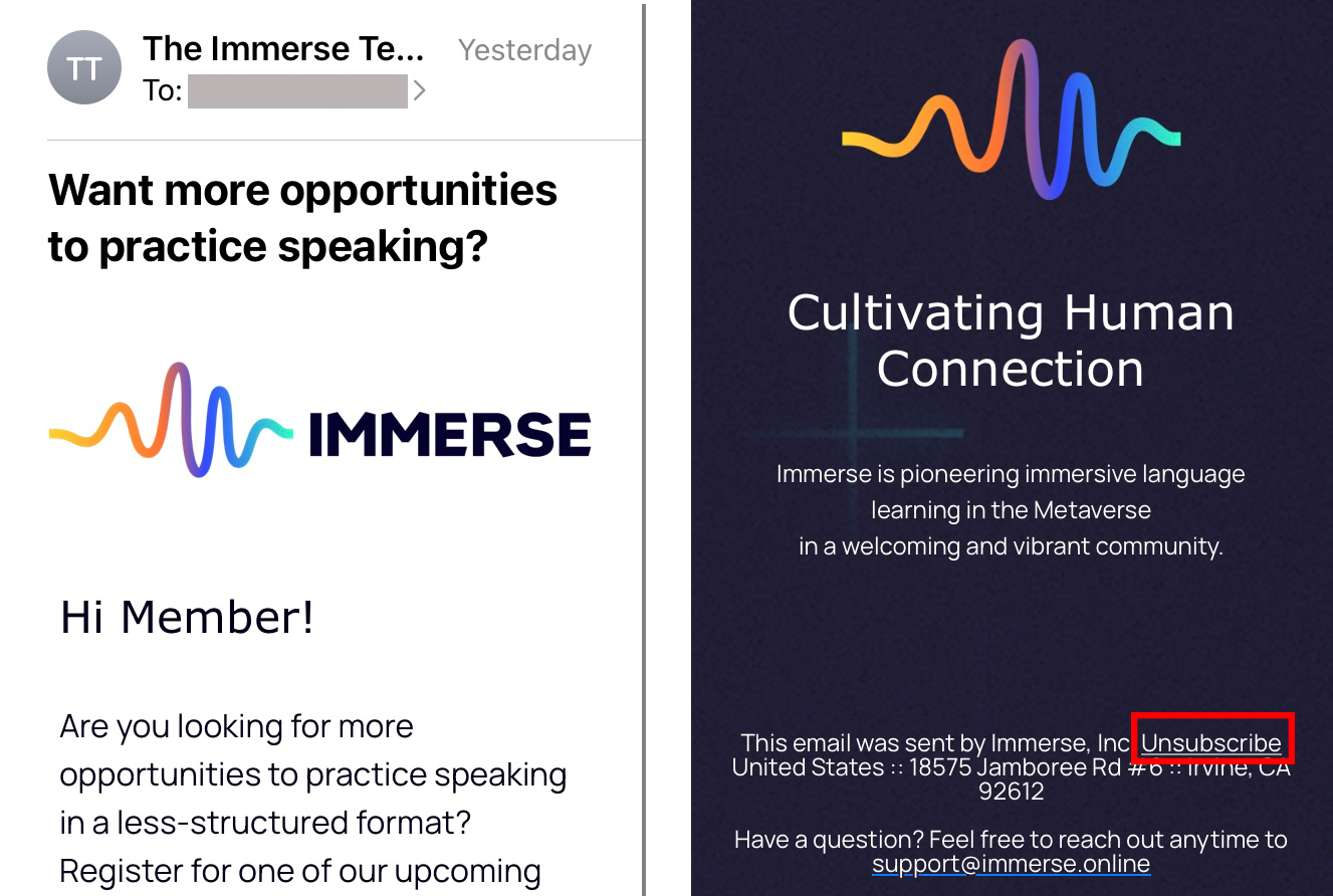 By signing up for IMMERSE or participating in a paid promotion, you may have opted in to our mailing list, which tells you about app updates, upcoming features, and Immerse news.