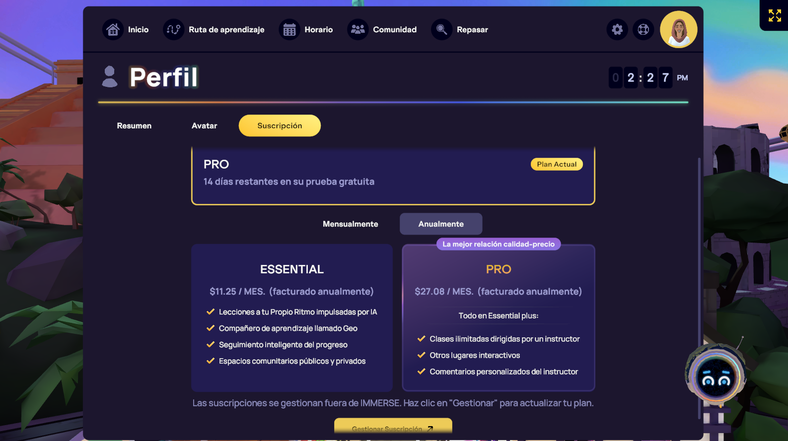 ⚠️ Importante: Los elementos multimedia de las secciones a continuación hacen referencia a nuestros precios obsoletos del Plan Legacy. Este precio ya no está disponible para los suscriptores que se unan a IMMERSE después del 17 de diciembre de 2025. Los usuarios actuales de estos planes pueden continuar con ellos o cambiarse a nuestras nuevas opciones mensuales o anuales.