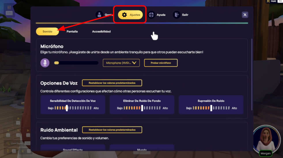 ¿Tienes dificultades para escuchar a otros usuarios, incluso con el volumen al máximo? ¿Te cuesta oír sonidos ambientales como el canto de los pájaros o el crepitar de una chimenea en ciertas escenas? ¿O quizás la música de fondo te distrae? Puedes ajustar varios ajustes de audio para personalizar tu experiencia IMMERSE y disfrutarla al máximo.