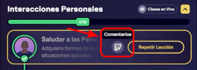 Tu progreso en la lección se guarda solo después de completar cada etapa. Si sales antes de terminar una etapa, tendrás que reiniciar esa sección de la lección al volver.