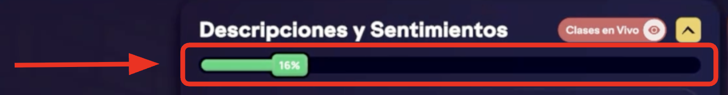 En la parte superior de cada sección, encontrarás una barra de progreso verde que representa visualmente tu avance general en la sección a medida que completas lecciones.