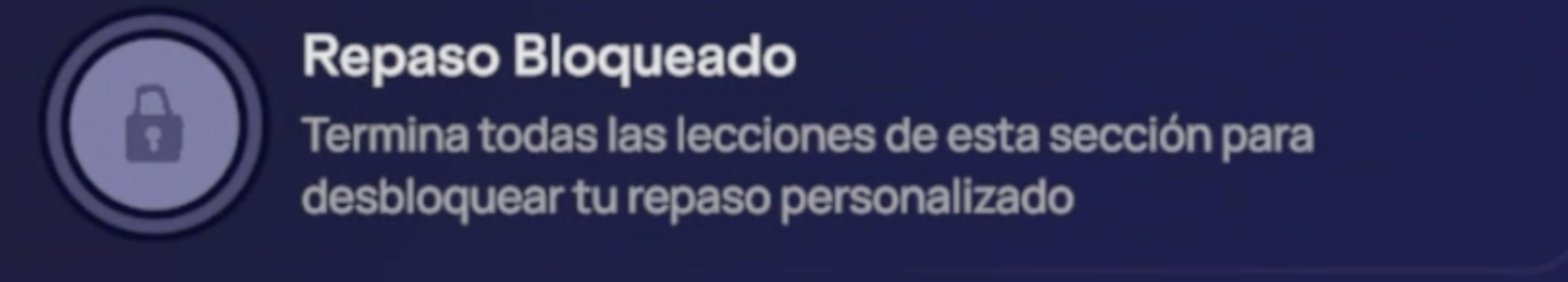 Cada sección concluye con una Experiencia de Repaso, guiada por Geo. Esta actividad dinámica y opcional puede repetirse y es sensible al contexto. Basándose en tus interacciones recientes y en tu progreso individual, te sugiere materiales relevantes para repasar. Estos ejercicios están diseñados para enfocarse en las áreas que necesitas mejorar y ayudarte a alcanzar los objetivos comunicativos de la sección.