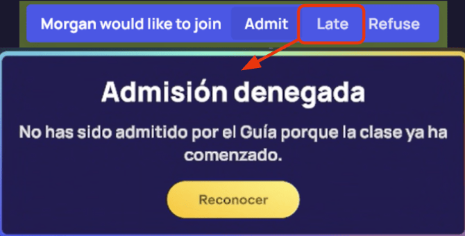 El Guía te marcará como “Late” (Tarde) y te regresará a tu Homeroom para que encuentres tu siguiente actividad.