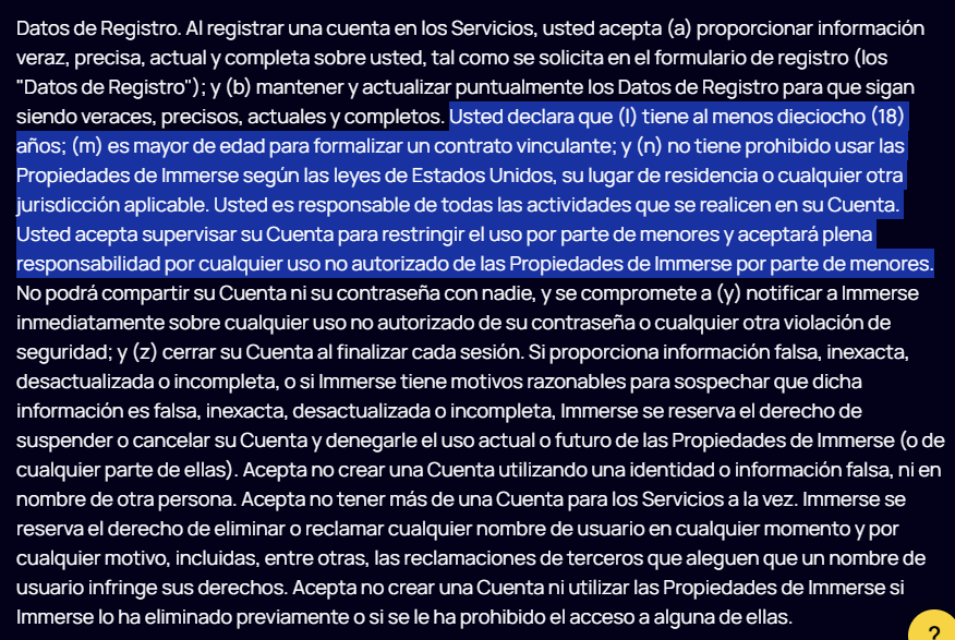 ❓¿Preguntas sobre nuestras Políticas de Usuario? Envíanos un mensaje a support@immerse.com y con gusto te ayudaremos a aclararlas.