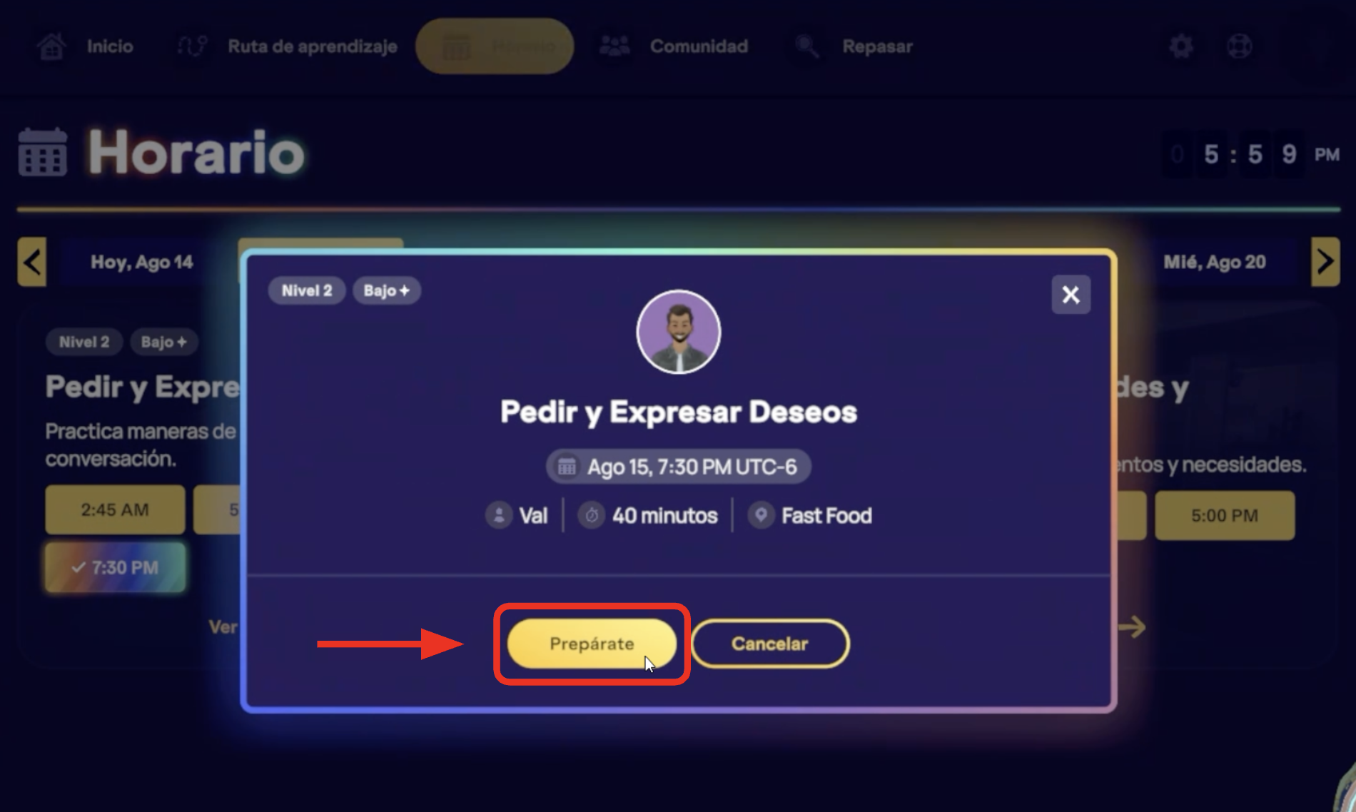 Haz clic en > “Prepárate” para comenzar el material de preparación.