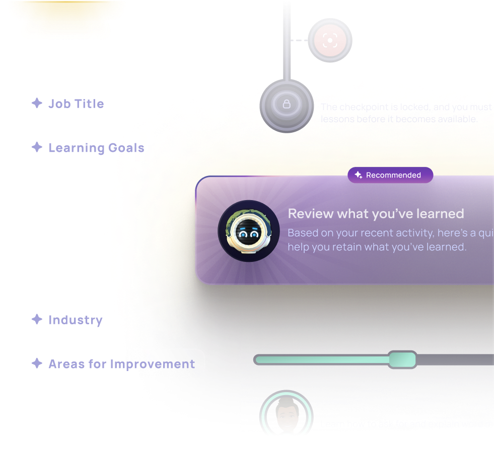 Nuestro programa de entrenamiento con avatares de IA ofrece una experiencia de aprendizaje a tu propio ritmo, permitiéndote alcanzar la fluidez cuando te convenga. Este programa proporciona retroalimentación personalizada, juegos de rol adaptativos y práctica ilimitada. Cada lección está meticulosamente diseñada por expertos en desarrollo curricular, basada en investigaciones y estructurada para ofrecer resultados tangibles y prácticos.