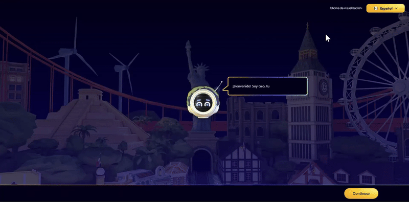 Haz clic en > Continuar x 3 para completar la introducción de Geo