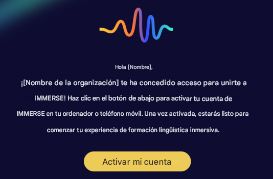 Una vez que recibas tu correo electrónico de registro de noreply@info.immerse.online , seguirás los pasos a continuación para activar tu cuenta: