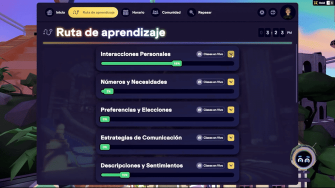¿Quieres ver esas Lecciones a tu Propio Ritmo impulsadas por IA y sus Clases en Vivo? Solo haz clic en la flecha amarilla en la esquina superior derecha de cada sección; activar el interruptor no abrirá la sección. Ten en cuenta que solo se abre una sección a la vez para una mejor experiencia.