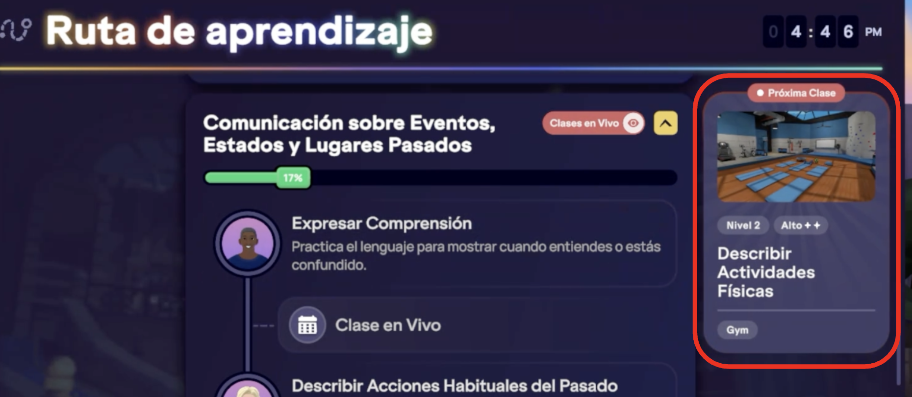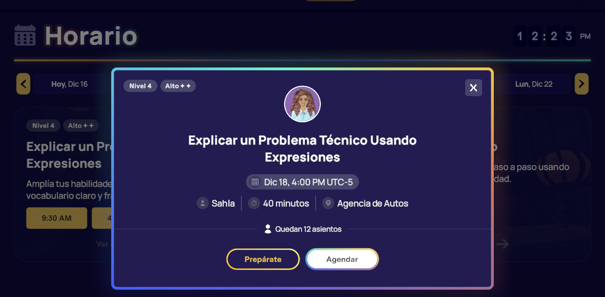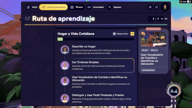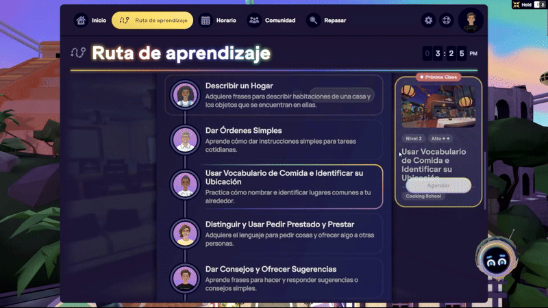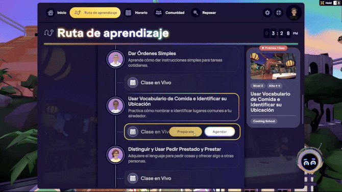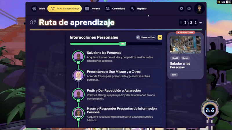 ⚙️ Nota: Puedes reservar y asistir a clases en vivo antes de completar la Lección a tu propio ritmo asociada en la Ruta de Aprendizaje. Aunque la Clase en Vivo se marcará como completada, aún debes terminar la Lección Autodidacta para ganar progreso en tu nivel y recibir un resumen de Retroalimentación de la Lección.