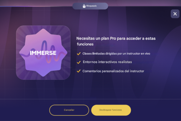 Centradas en habilidades de comunicación práctica para su aplicación en el mundo real, las Clases en Vivo de IMMERSE van mucho más allá de la simple memorización. Te brindan herramientas lingüísticas e información cultural para viajar, conectar con otras culturas o avanzar profesionalmente. Descubre la diferencia de IMMERSE para disfrutar de una experiencia de aprendizaje de idiomas accesible y divertida.
