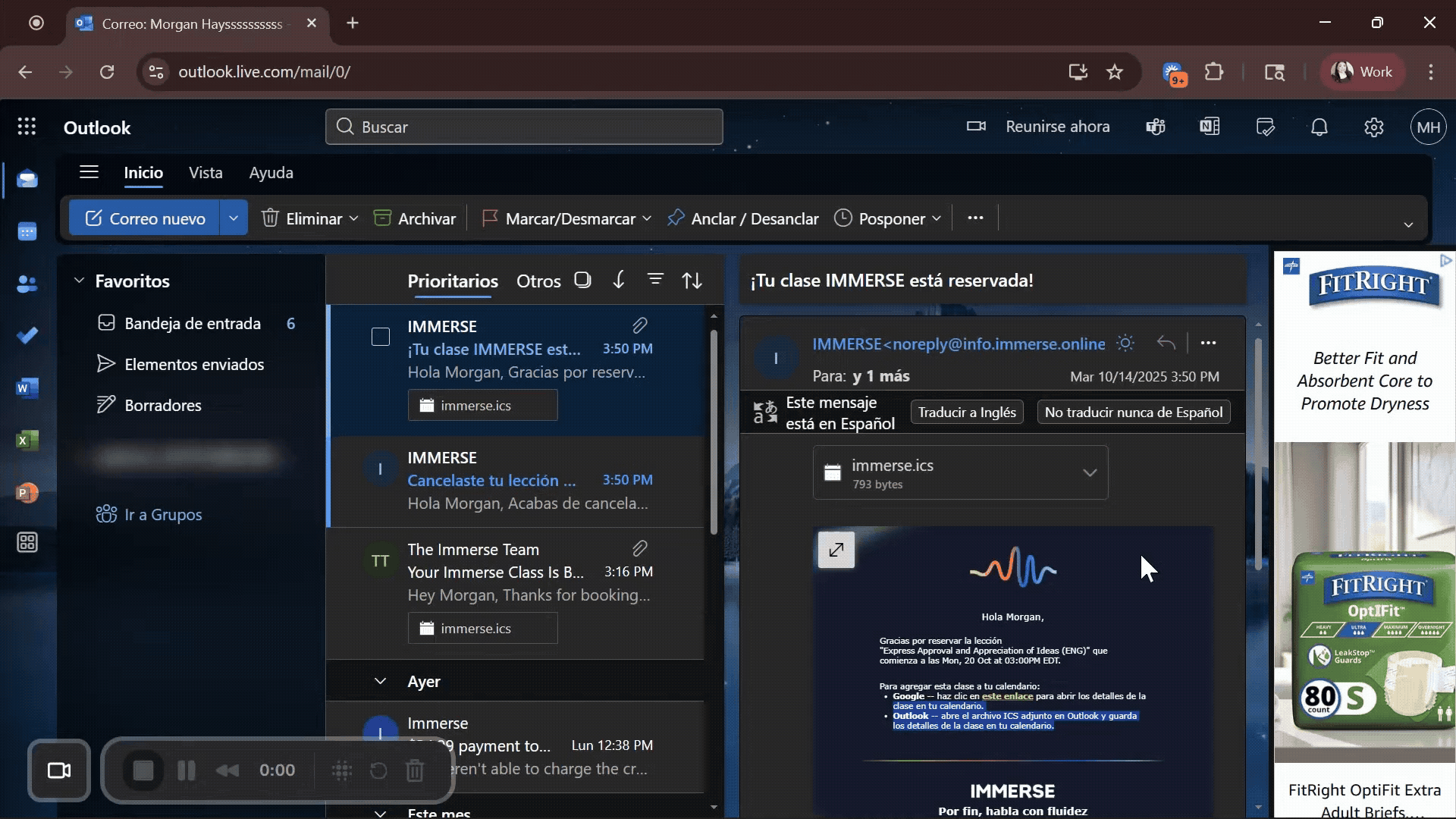 Tras reservar una clase en vivo, recibirás un correo electrónico de confirmación. En este correo, podrás crear un evento de calendario para Google o Outlook. Sigue los pasos a continuación para añadir tu clase al calendario que prefieras.