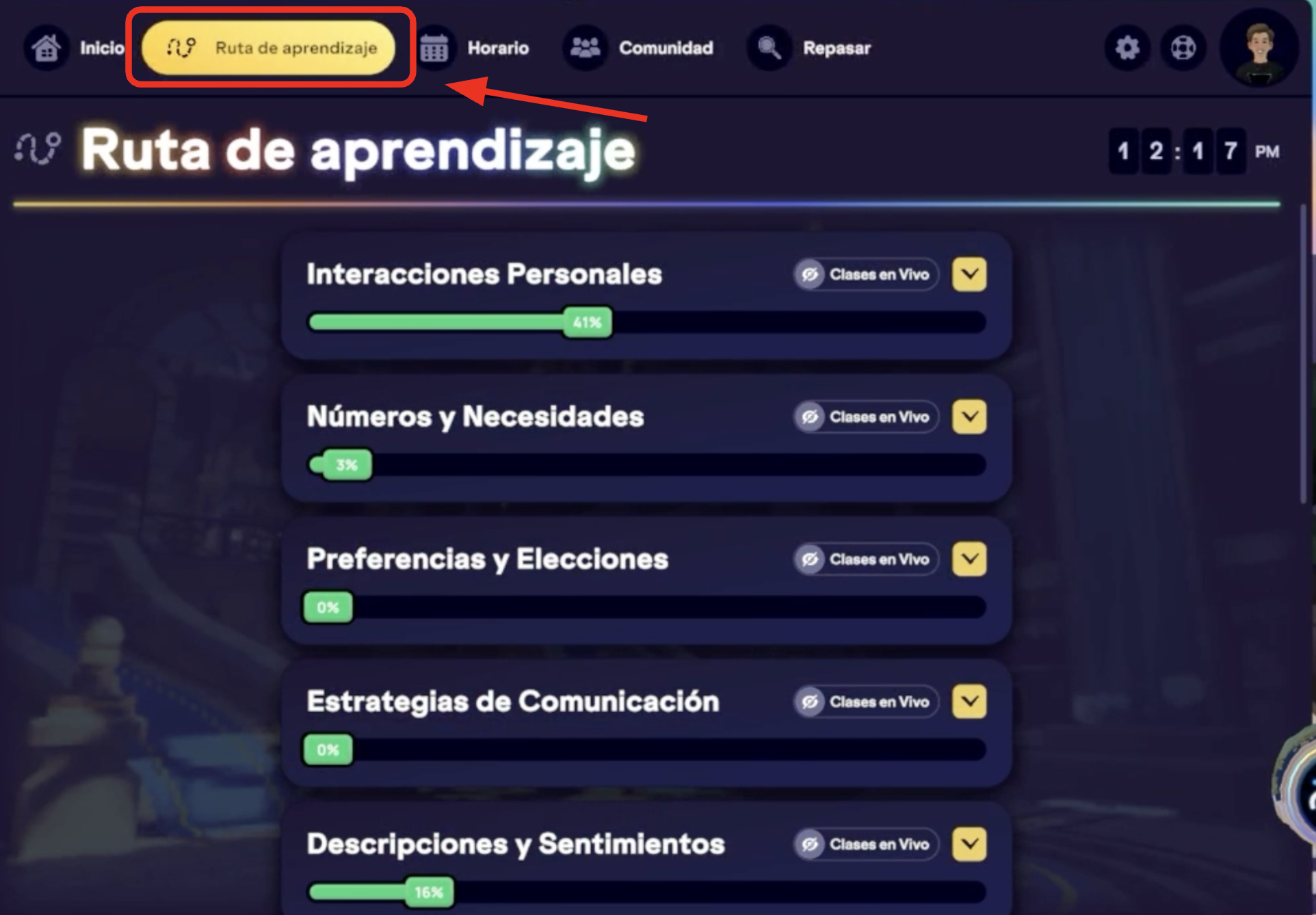 > Desde la pestaña Ruta de aprendizaje