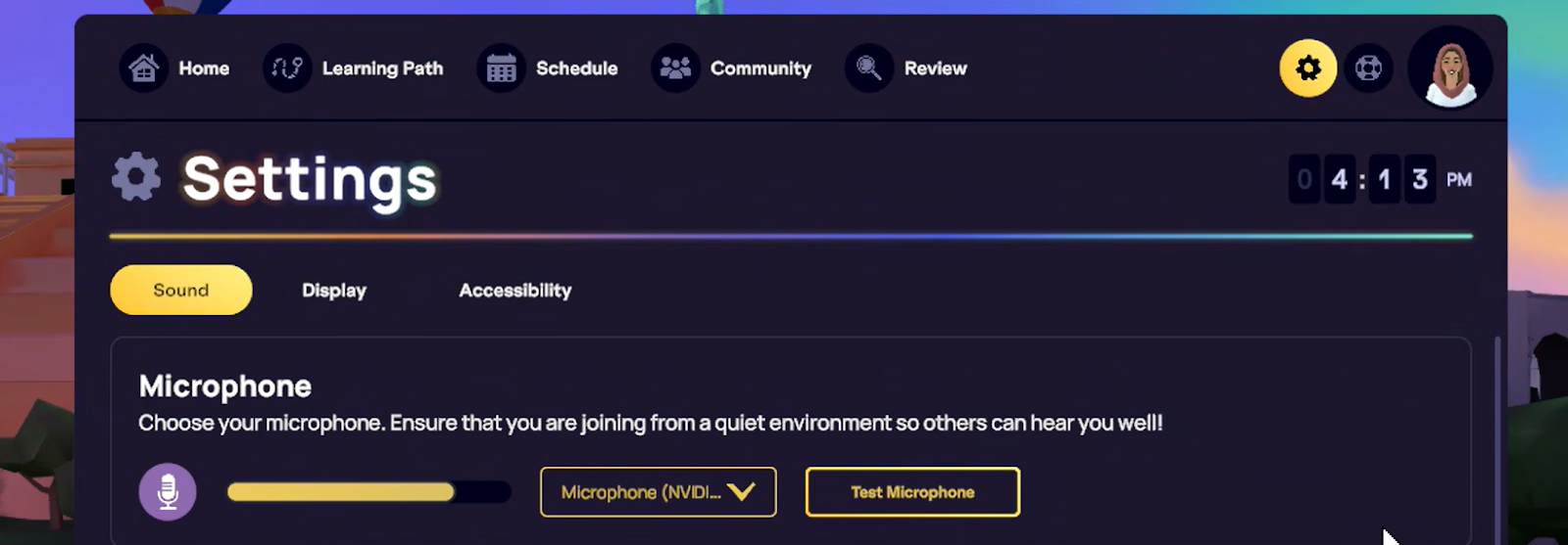 ⚠️ Tu ne pourras pas voir les entrées micro depuis l’IMMERSE Homeroom dans le navigateur. Cela affichera toujours « Microphone (NVIDIA V…) ».