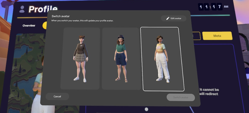 Clique > Modifier l’avatar Meta pour ouvrir la fenêtre d’édition de l’avatar dans IMMERSE et effectuer des modifications