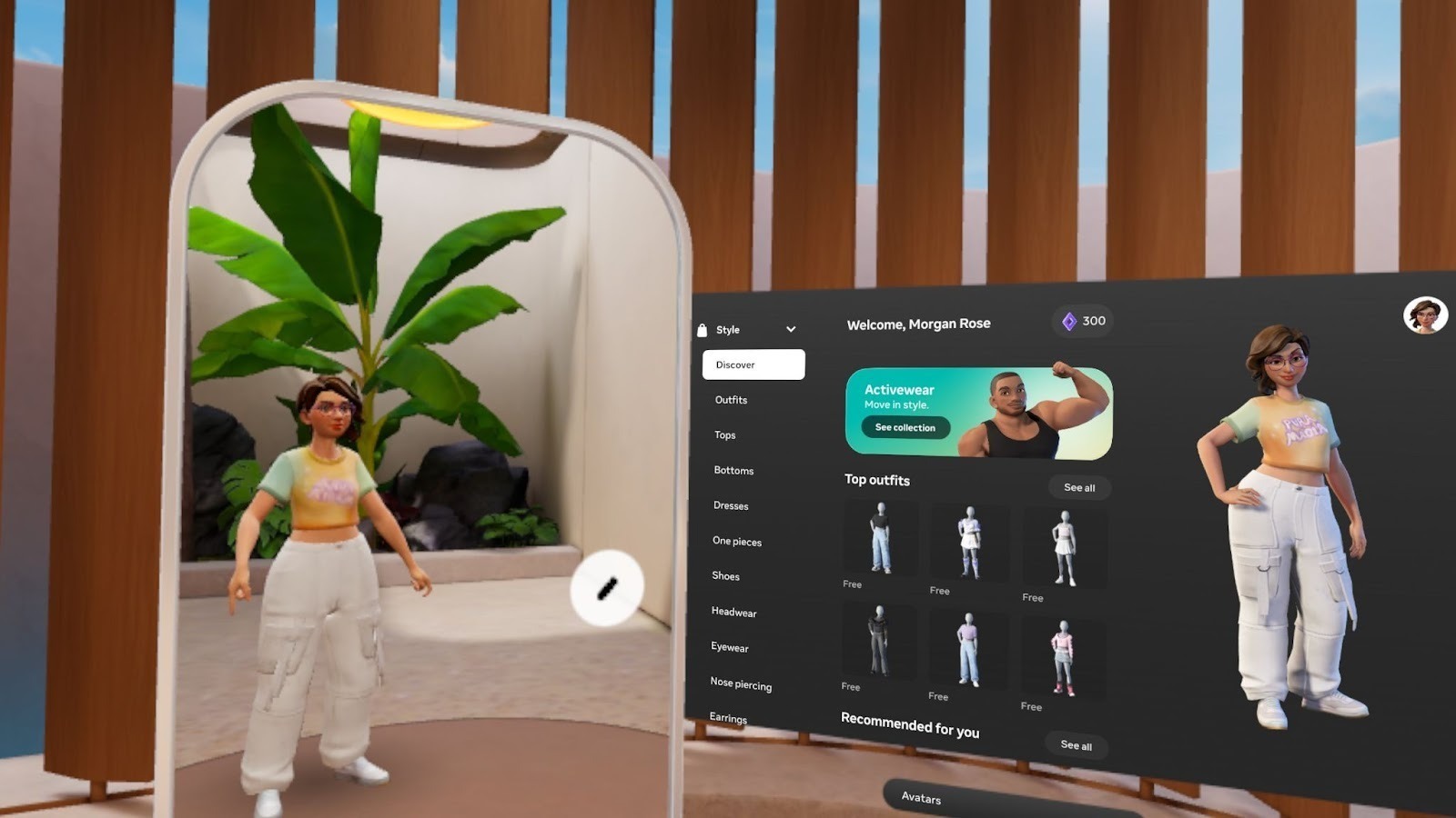 Si tu possèdes un casque VR Meta Quest, tu peux créer et personnaliser ton propre avatar Meta dans le homeroom Meta Quest.