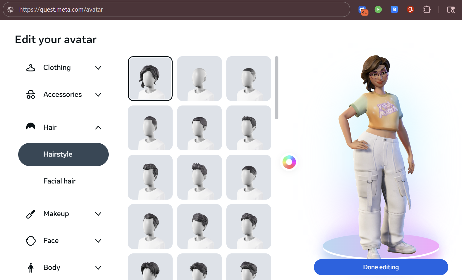 Clique sur l’icône crayon pour ouvrir l’éditeur d’avatar.