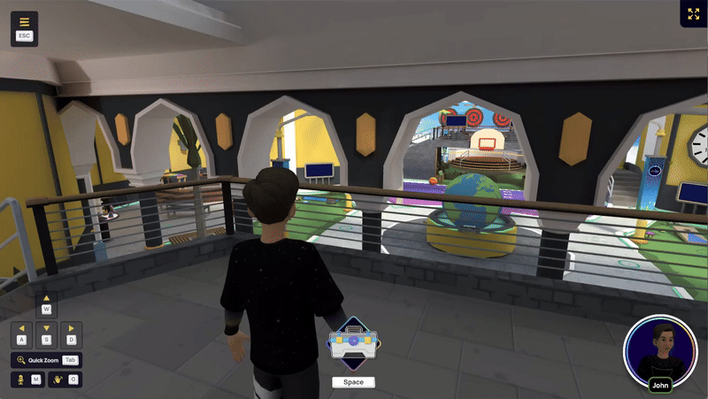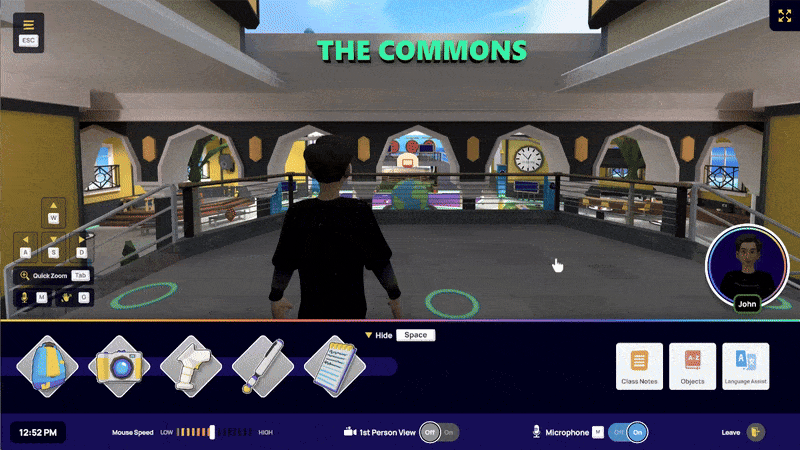 Apprenez à vous déplacer dans des cours en direct et des espaces communautaires tout en interagissant avec les objets qui vous entourent.