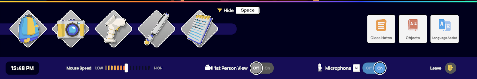 IMMERSE propose un environnement d'apprentissage interactif composé de divers objets conçus pour impliquer les apprenants et enrichir l'enseignement. Vous trouverez ci-dessous les actions et commandes essentielles pour interagir avec ces objets, ainsi que des conseils pour une utilisation efficace pendant vos sessions.
