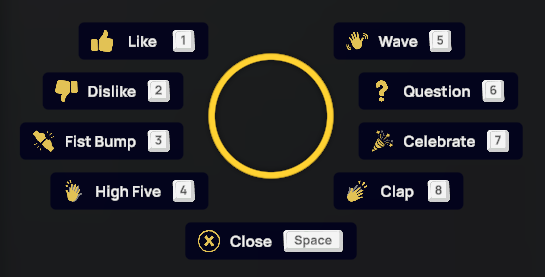 1. Appuyez sur la touche G de votre clavier ou cliquez sur l'icône « Main agitée » en bas à gauche de l'écran. Sélectionnez ensuite le bouton correspondant à l'écran ou sur votre clavier pour activer l'émoticône.
