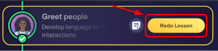 Les leçons à votre rythme sont préprogrammées avec un avatar et une scène spécifiques pour illustrer le contenu de la leçon. Les apprenants ne peuvent pas modifier ces paramètres. Pour vous entraîner dans différents espaces avec l'avatar de votre choix, explorez nos Scènes Communautaires.