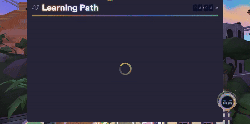 Cliquez sur « Parcours d'apprentissage » en haut (ordinateur ou mobile) ou en bas (VR) de l'écran.