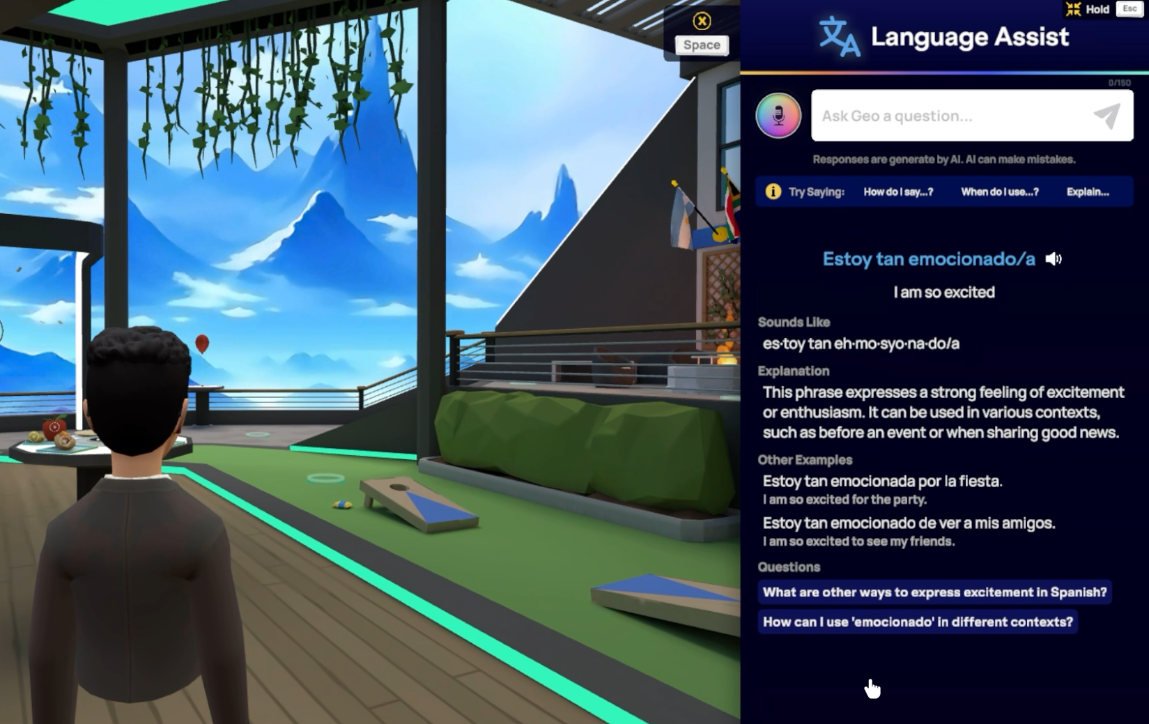 L'apprentissage des langues est désormais plus facile ! Grâce au menu géographique en VR (voir ci-dessous) ou au menu du bureau (voir ci-dessus), vous pouvez désormais :