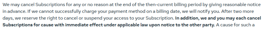 Les abonnements sont valides pour la période facturée immédiatement après le débit. Ils ne peuvent pas être mis en pause et repris plus tard. Comme les coûts d’abonnement ne sont pas remboursables, les annulations ne donnent pas droit à un remboursement au prorata pour le temps non utilisé.