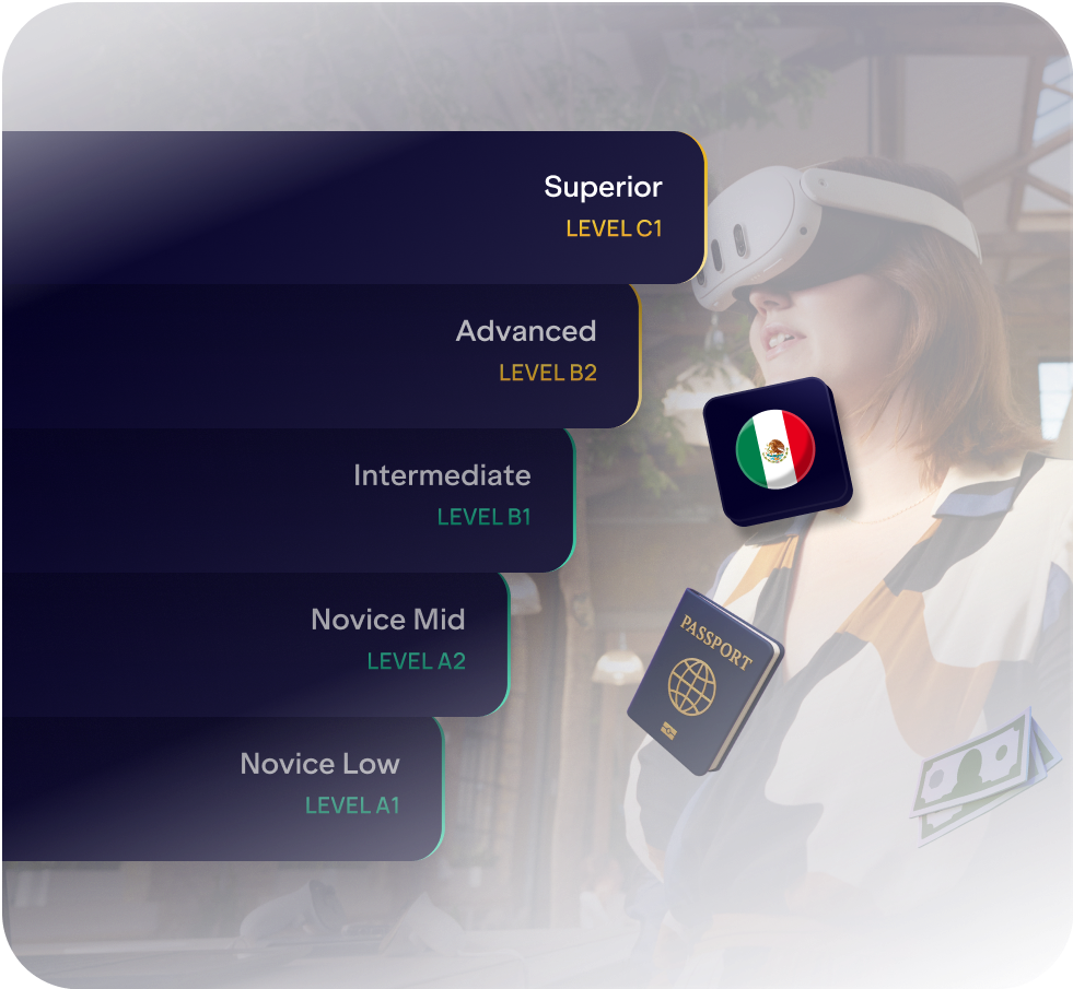 • IMMERSE offre une approche expérientielle basée sur des scénarios qui va au delà des exercices traditionnels de manuel. En pratiquant les compétences linguistiques dans des environnements réalistes et immersifs, les apprenants gagnent la confiance et l’aisance nécessaires pour communiquer efficacement dans des situations réelles. Les scénarios incluent naviguer dans un aéroport, décrire une urgence et négocier des achats, ce qui permet aux apprenants de maîtriser la langue du quotidien dans des contextes authentiques.