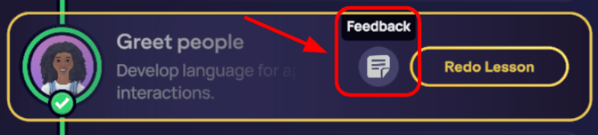 O feedback que você recebe do tutor de IA vai te incentivar e apontar exatamente o que você fez bem. Ele também explicará o que você pode aprimorar na gramática e a clareza da sua comunicação. Como a IA aprende conforme você pratica, esta seção te ajuda a treinar e a pensar em como melhorar a cada tentativa.