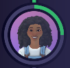 O progresso é representado visualmente por um indicador circular que circunda o ícone do avatar. Esse círculo se preenche em incrementos de 25%, atualizando-se à medida que cada etapa da lição é concluída.