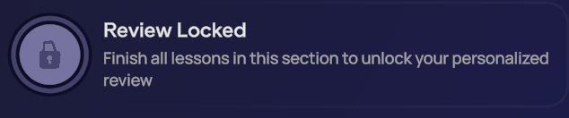 Cada seção termina com uma Experiência de Revisão, guiada por Geo. Esta atividade dinâmica e opcional pode ser repetida e é sensível ao contexto. Com base no engajamento recente nas aulas e no progresso individual, ela sugere material relevante para revisão. Esses exercícios são projetados para identificar as áreas que precisam ser aprimoradas, ajudando você a atingir os objetivos de comunicação da seção.