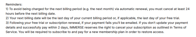 ❓Tem mais alguma dúvida sobre nossas Políticas de Cobrança ou Termos de Serviço? Envie uma mensagem para support@immerse.com para obter ajuda.
