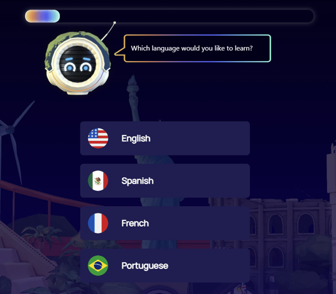 Ao criar sua conta pela primeira vez, seja no aplicativo web ou em realidade virtual, você selecionará o idioma que deseja aprender e fará um teste de proficiência para determinar seu nível de fluência. No entanto, essa seleção pode ser alterada a qualquer momento, permitindo que você faça aulas de qualquer idioma e em qualquer nível.
