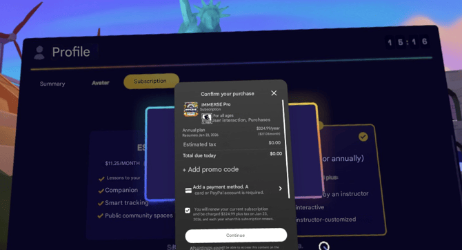 Escolha a assinatura IMMERSE Unlimited.