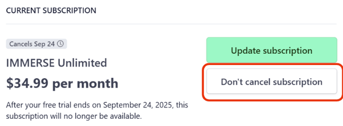 Se você pagou por uma assinatura do IMMERSE e depois a cancelou, você manterá o acesso total ao IMMERSE até o final do período pago.