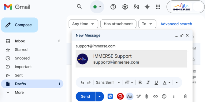 Você pode enviar um e-mail para nossa equipe de suporte em support@immerse.com. Esta é a maneira mais direta de entrar em contato, e nossa equipe responderá o mais breve possível.