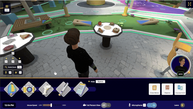 Durante uma Aula ao vivo ou comunidade, você terá acesso a diversas ferramentas que auxiliarão na compreensão do conteúdo e na navegação pelo ambiente de aprendizagem imersivo. Não deixe de testá-las nos Tutoriais ou nas Cenas da Comunidade antes de participar de uma Aula ao Vivo.