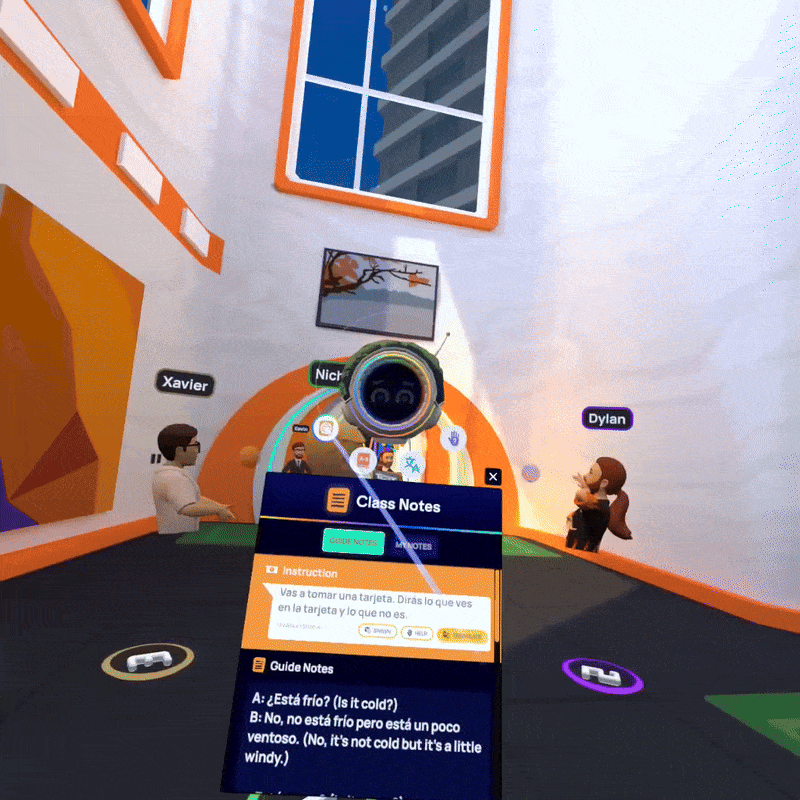 A IMMERSE oferece aos Guias um conjunto dedicado de ferramentas de gestão de sala de aula para apoiar o fluxo, a segurança e a eficácia das aulas de idiomas imersivas ao vivo. Essas ferramentas funcionam nos bastidores, permitindo que os Guias monitorem o engajamento, respondam às necessidades individuais, gerenciem a dinâmica do grupo e acessem recursos instrucionais sem interromper a experiência da aula.