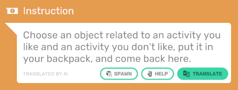 As instruções da atividade são enviadas pelo Guia por meio de uma notificação pop-up após a demonstração e explicação, para que você possa consultá-las a qualquer momento. Localizadas em suas anotações de aula, você pode usar um botão de tradução para traduzi-las para o seu idioma de exibição ou gerar um cartão com as instruções para exibir à sua frente.