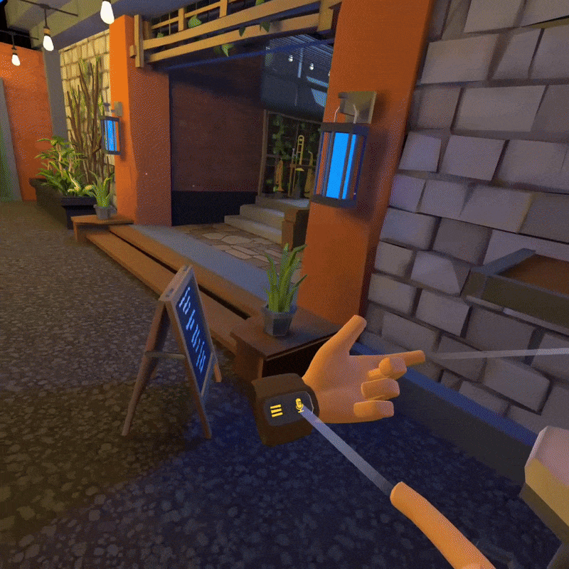 Clique no botão do microfone na parte interna do seu pulso esquerdo para ativar/desativar o modo silencioso.