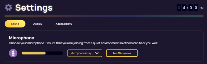 Na primeira vez que você iniciar o aplicativo, uma janela pop-up solicitará que você conceda permissão ao aplicativo para acessar seu microfone. Se você negar o acesso, janelas pop-up de lembrete continuarão solicitando que você conceda a permissão para que outros usuários da IMMERSE possam ouvi-lo.